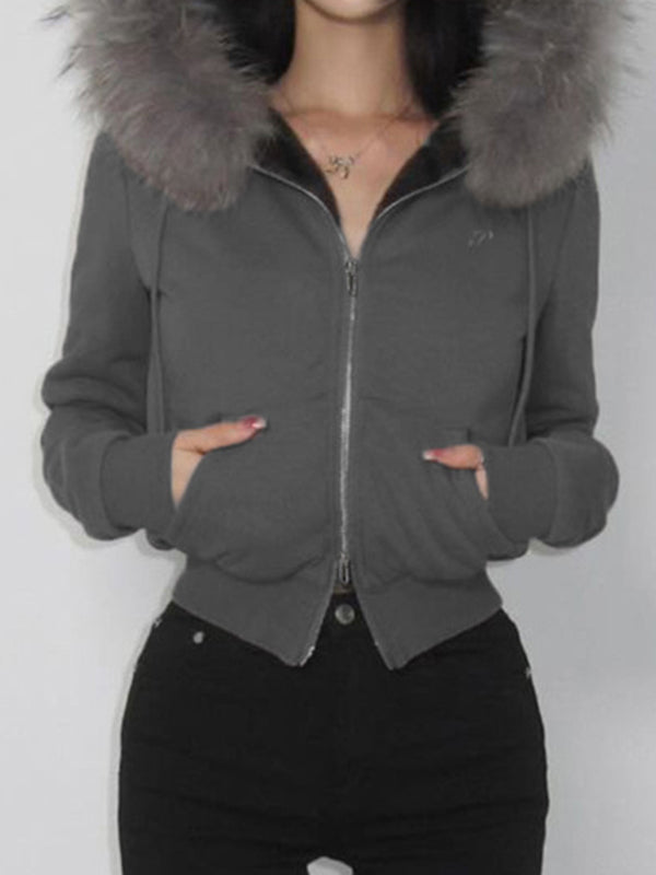 Luvik | Yksivärinen Kirjainkirjonta Keinoturkki Saumajakku
