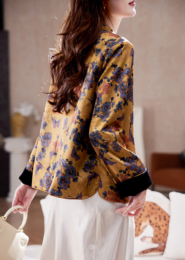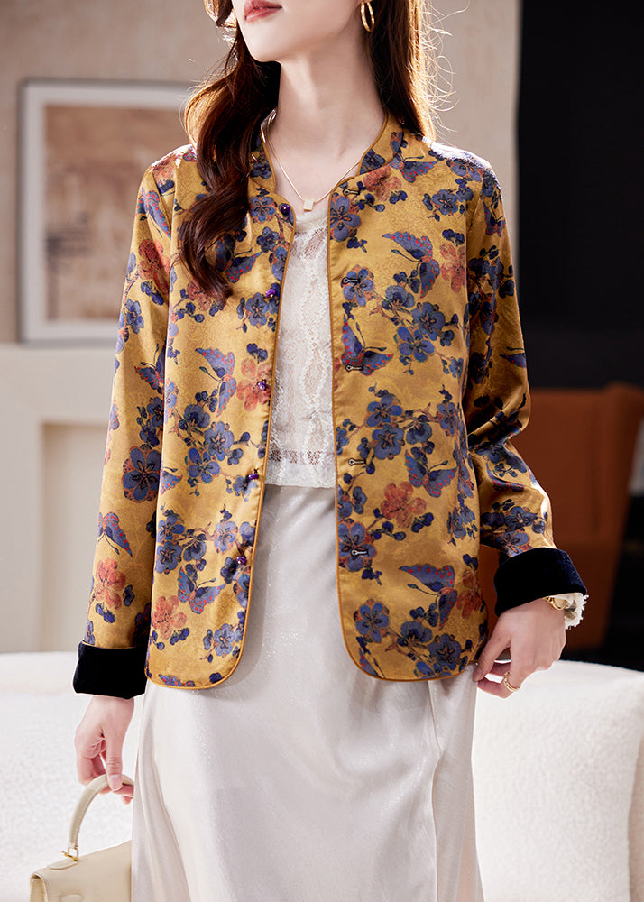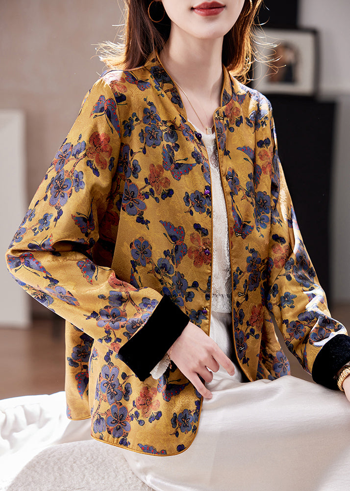 Luvik | Tyylilaji Keltainen Korkea Kaulus Jacquard Silkkitakit