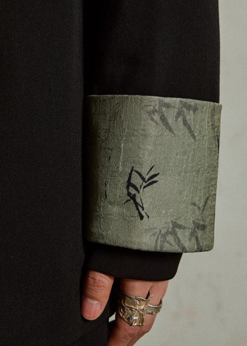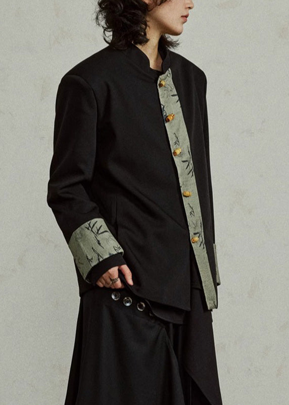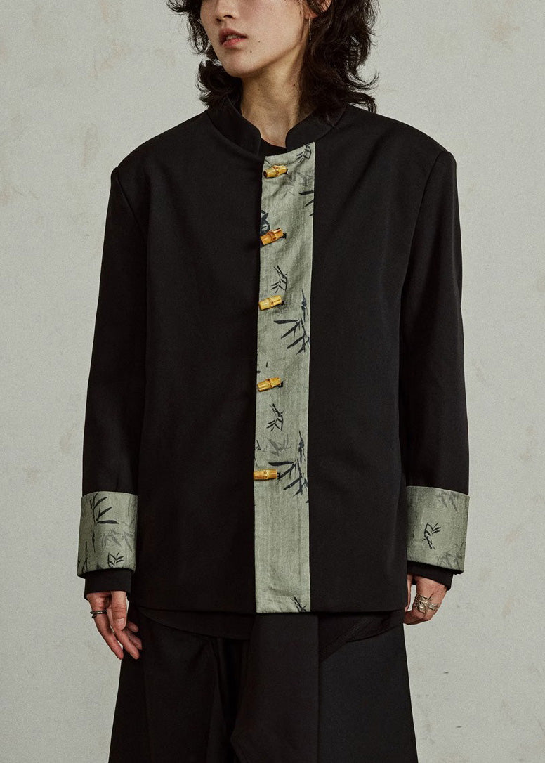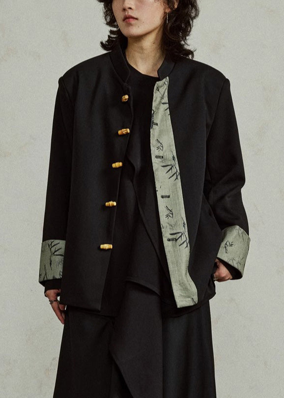 Luvik | Tyylikkäät mustat takit korkealla kauluksella nappipainatuksella