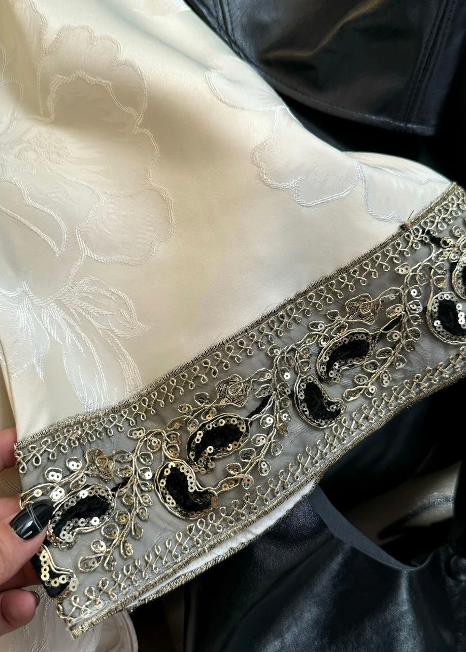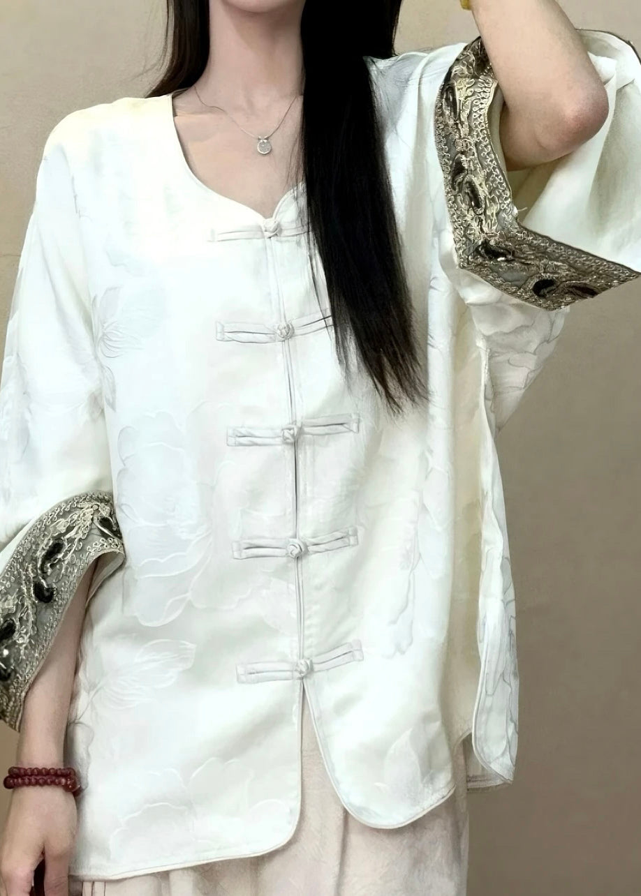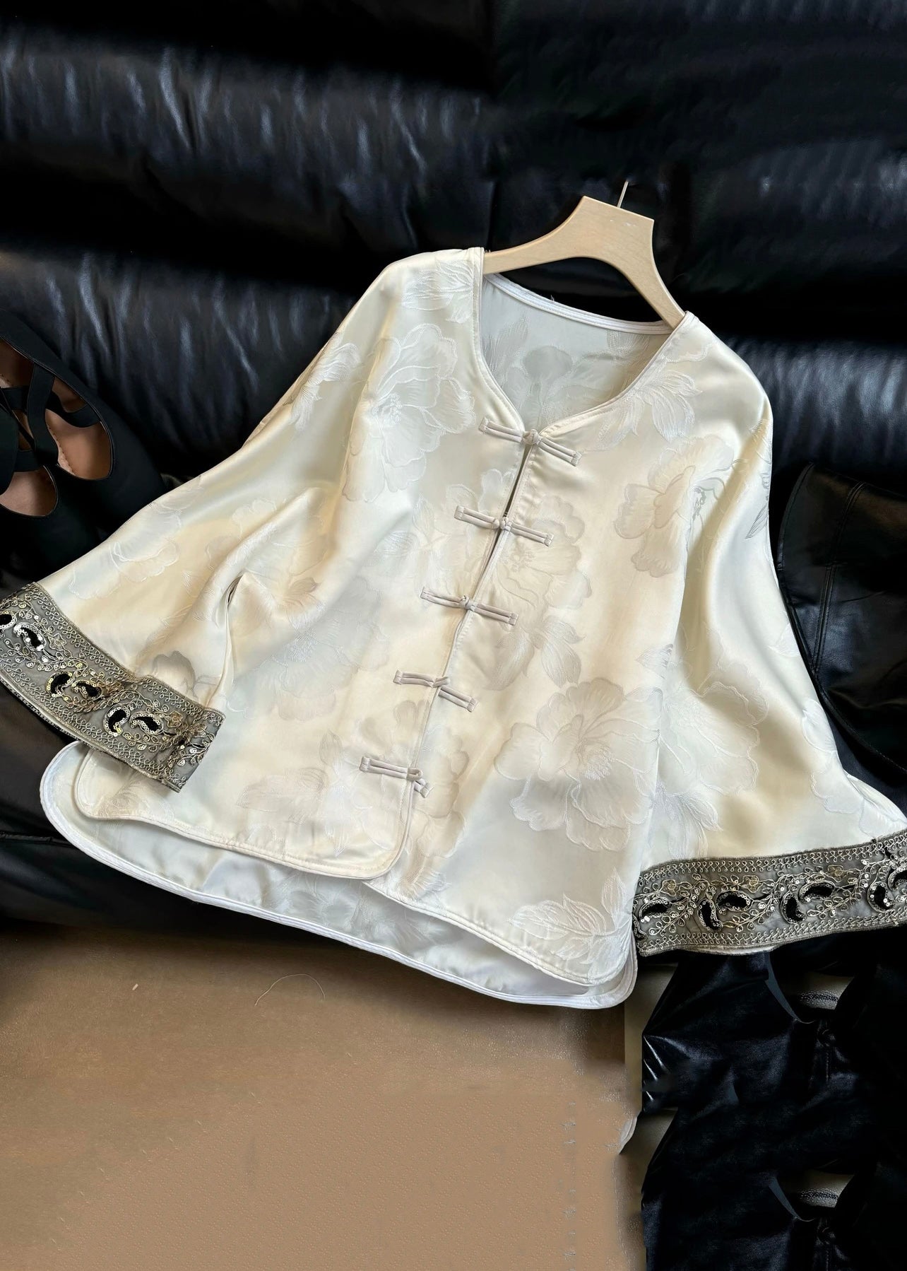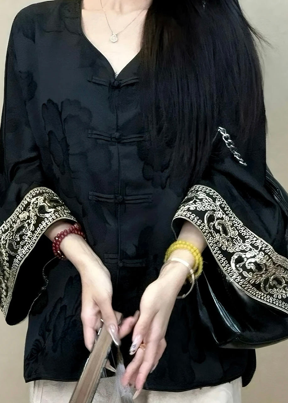 Luvik | Tyylikäs Musta Pyöreä Kaula Jacquard Nappi Silkkitakit Pitkät Hihat