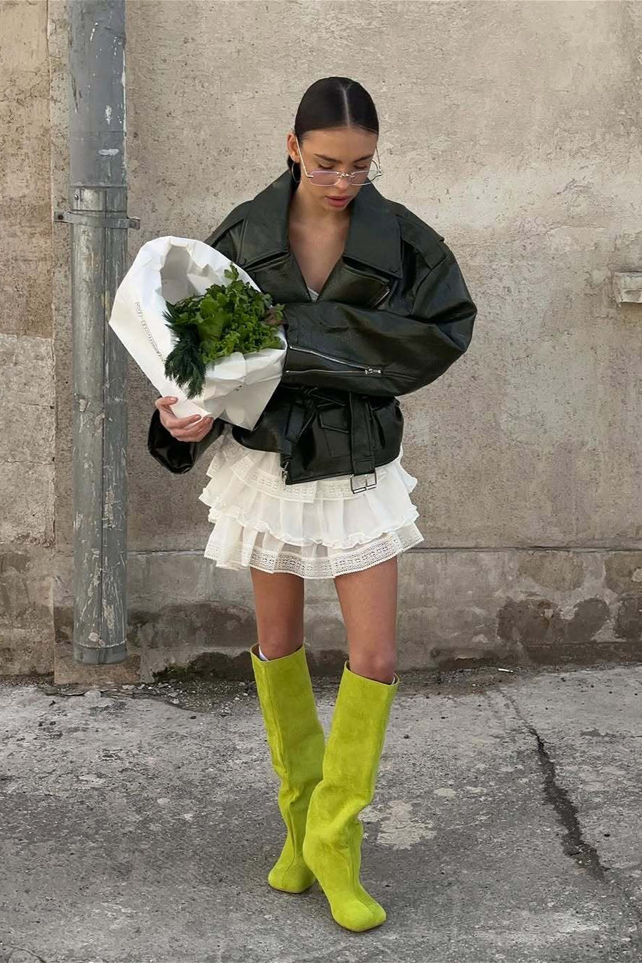 Luvik | Ylös Vihreä Nahkamoottoripyörätakki