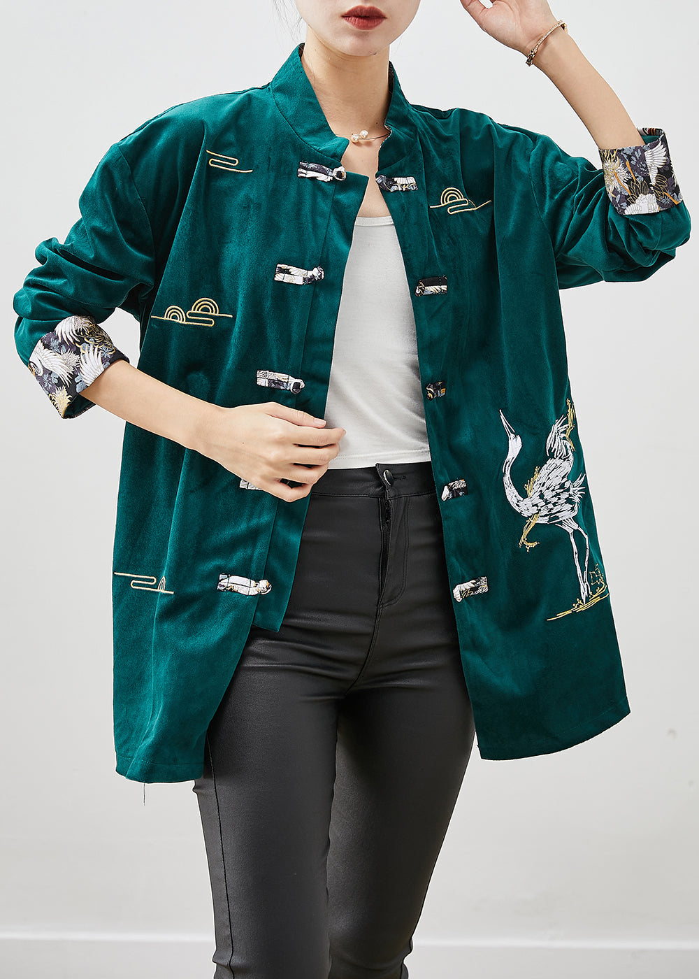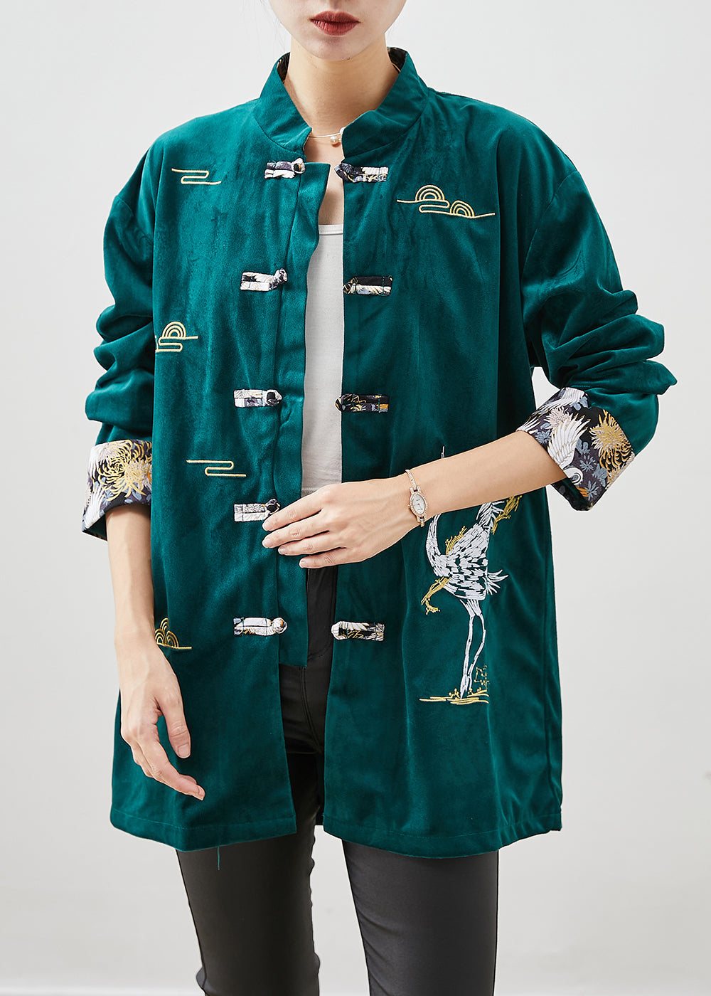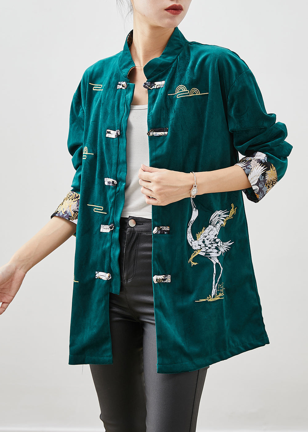 Luvik | Vihreä silkkiveluuritakki, jossa brodattuja kiinalaisia nappeja