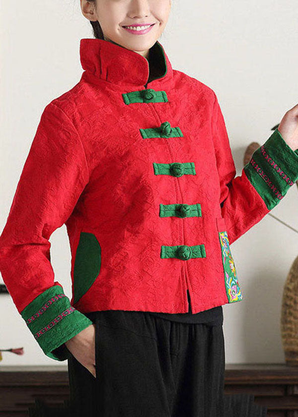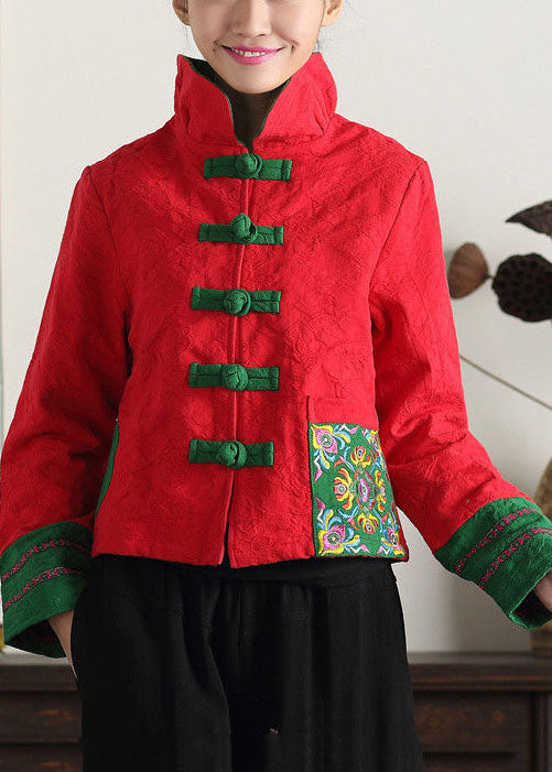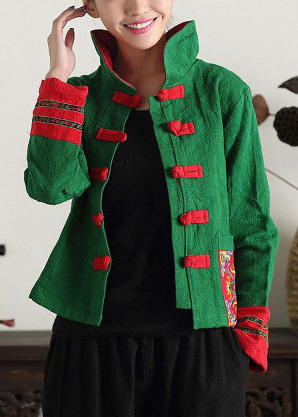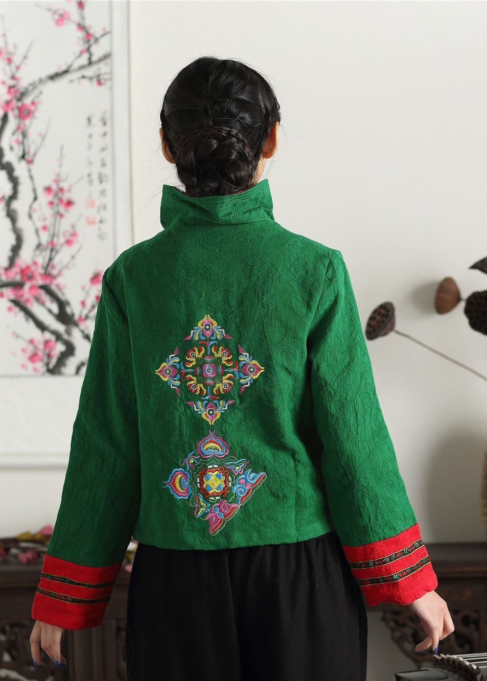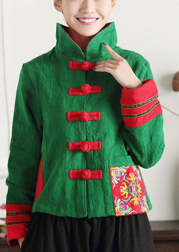 Luvik | Kiina-puuvillasta valmistettu vihreä korkea kauluksellinen kirjailtu patchwork-takki