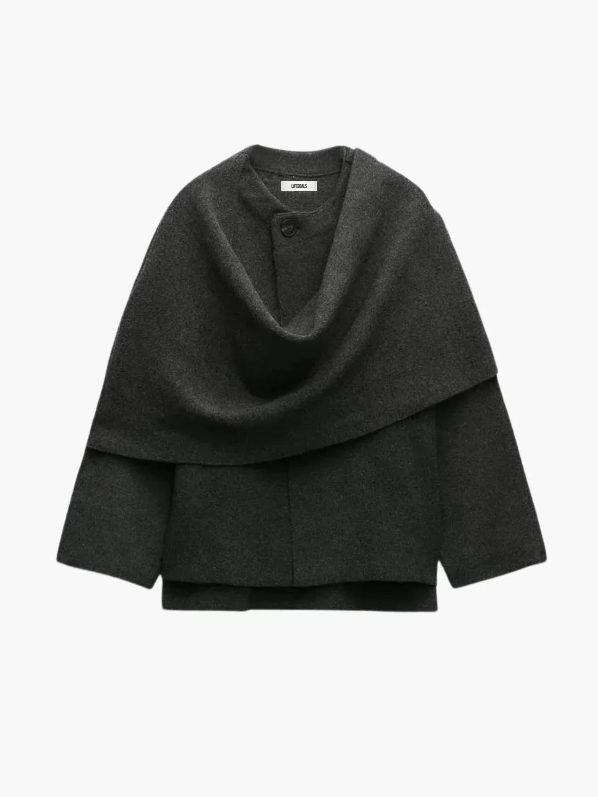 Tämä elegantti kappale sisältää integroitu huivikaulus, joka viehättävästi laskeutuu ja tarjoaa täydellisen yhdistelmän tyyliä ja mukavuutta. Korkealaatuisesta villasekoitteesta valmistettu luvik-sovitus takissa tarjoaa mukavan ja rentouttavan käyttökokemuksen, mikä on ihanteellinen lisä mihin tahansa asuun. Yksinkertainen muotoilu ja pehmeä rakenne tekevät siitä upean valinnan sekä elegantteihin että päivittäisiin asuihin.