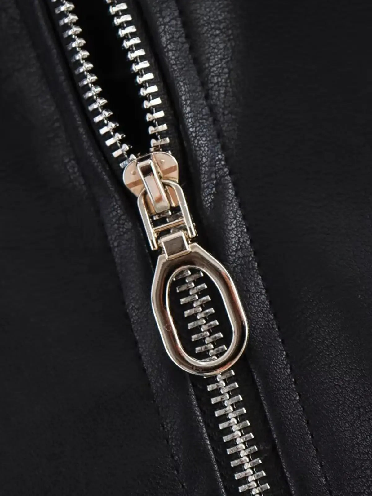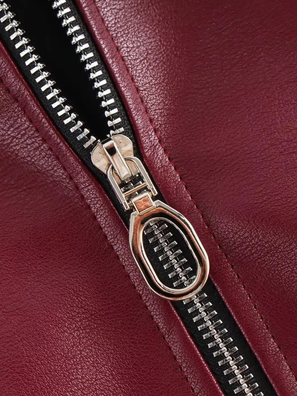 This trendy jacket, made from vegan leather, is short and equipped with a practical zipper, and it has a collar. Its stylish, loose fit is perfect for layering and elevates any outfit. A must-have fashion piece!