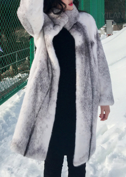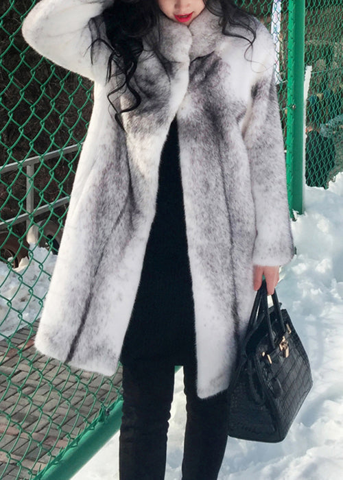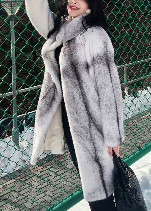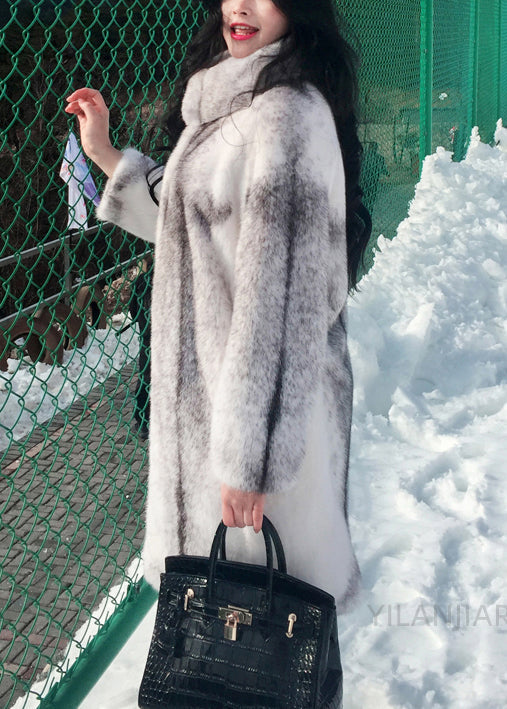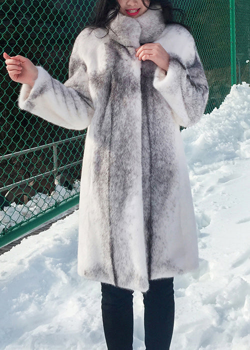 Luvik | Valkoinen talvinen korkeakauluksinen minkkitakki