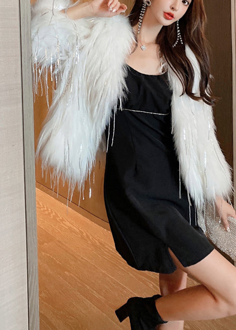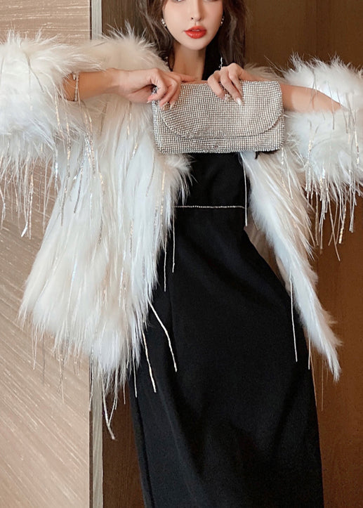 Luvik | Valkoinen tekoturkismanttelipäällyste, jossa on tupsut talveksi