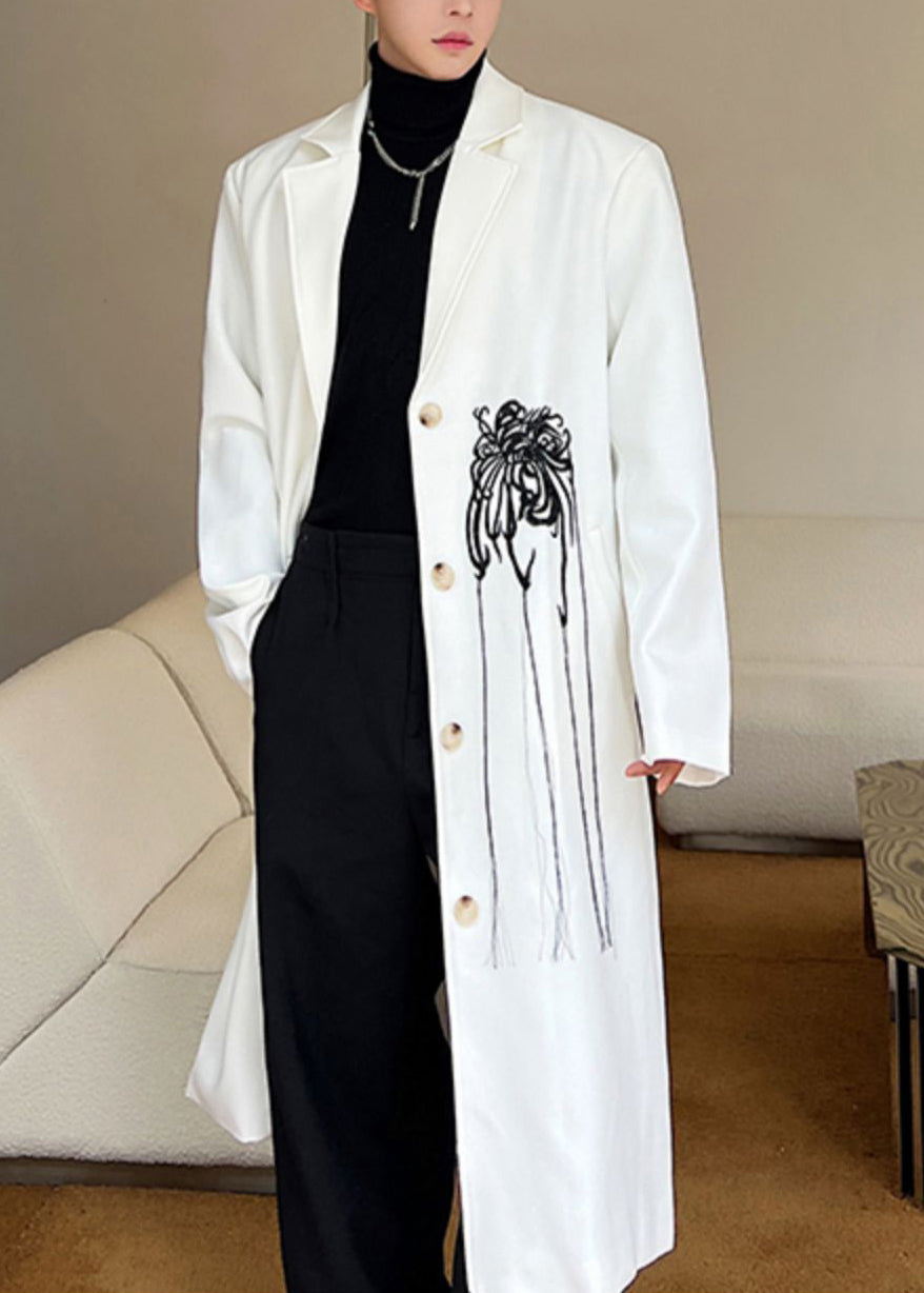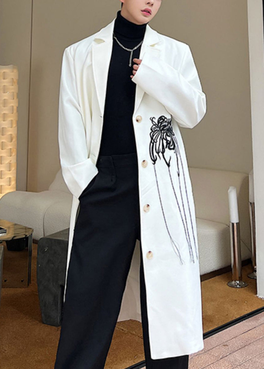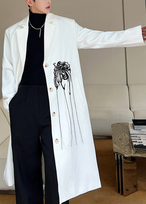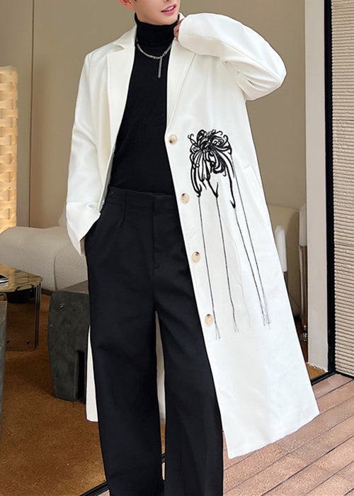 Luvik | Valkoinen brodeeraus nappi puuvilla miesten trench-takit