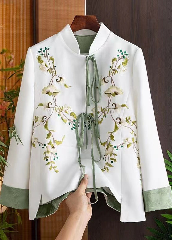 Luvik | Puuvillasta ommellut brodeeratut patchwork-takit valkoisella korkealla kauluksella