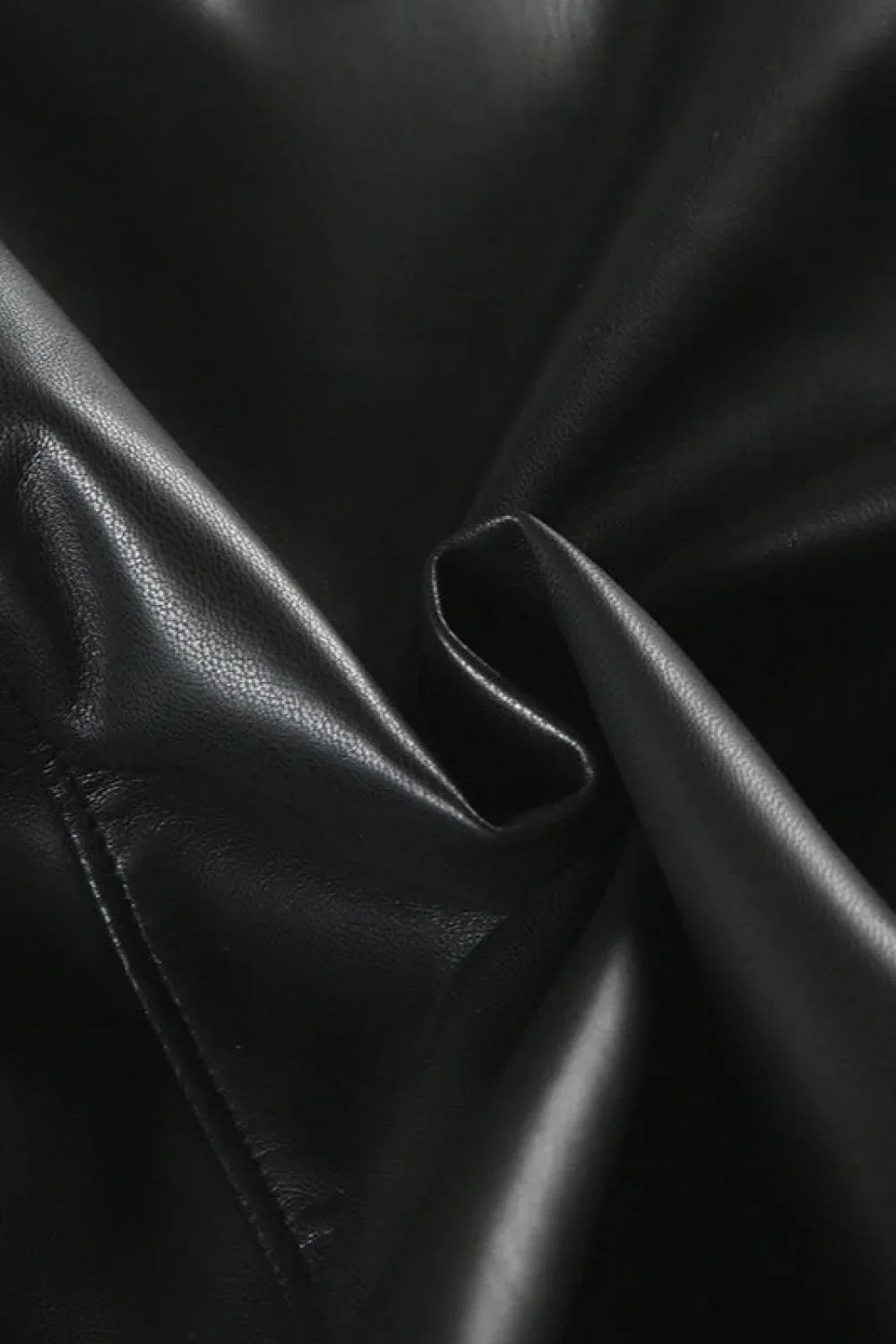 Luvik | Y2K Tekoturkis Kauluksella Nahka Vyötärö - Rypytetty Takki