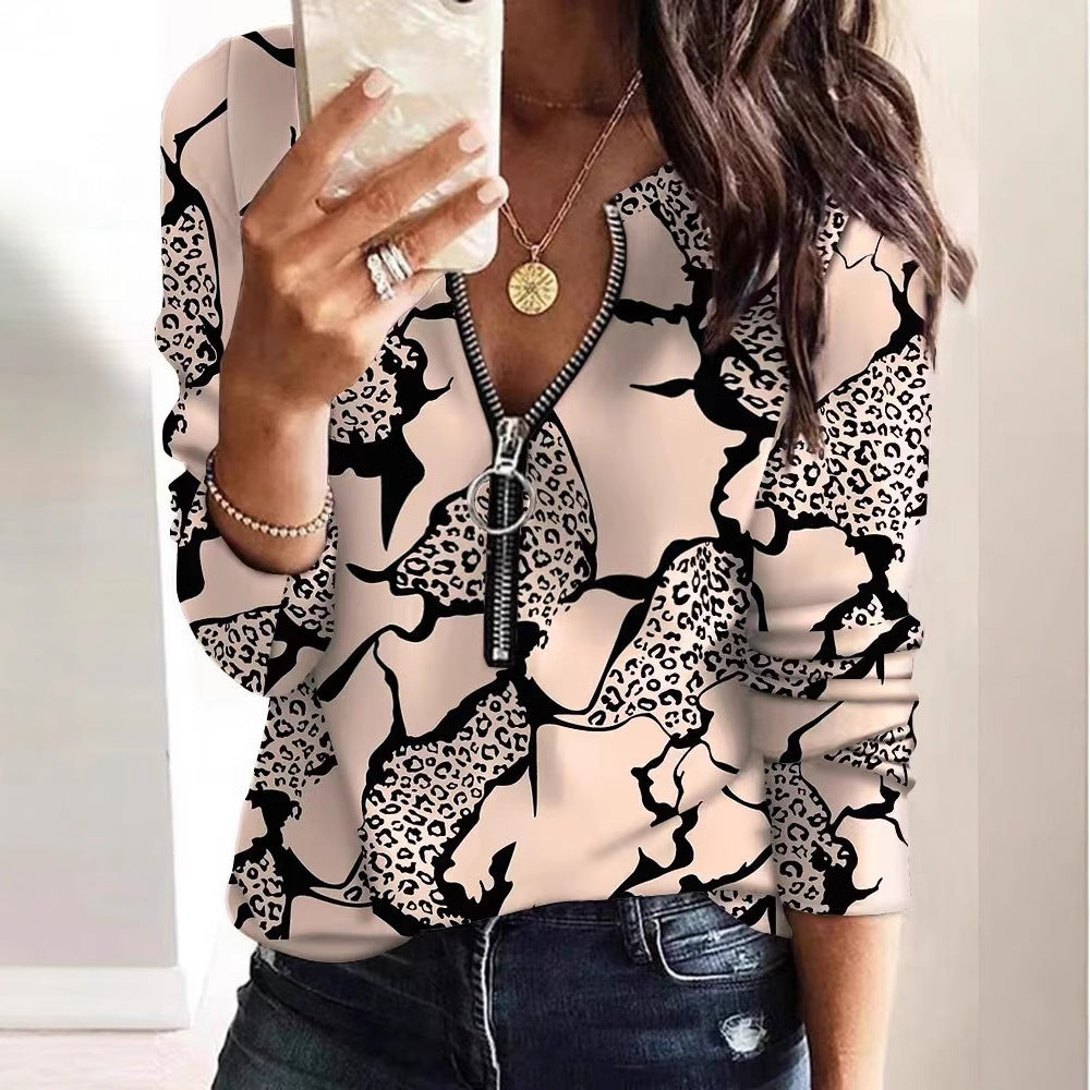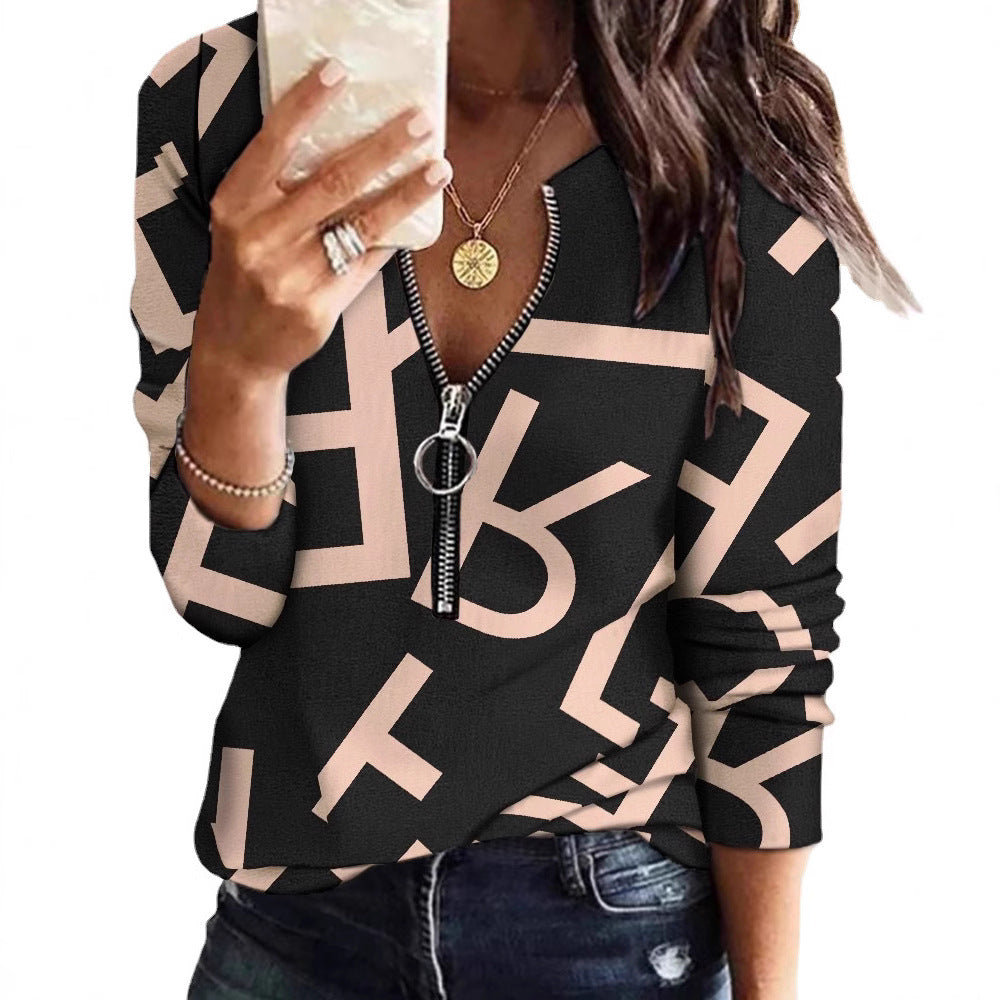 Tutustu tyylikkääseen naisten puseroomme, jossa on käytännöllinen vetoketju, joka on sekä muodikas että toiminnallinen. Tämä pusero erottuu ainutlaatuisella geometrisella kuviolla ja tarjoaa modernin ilmeen.