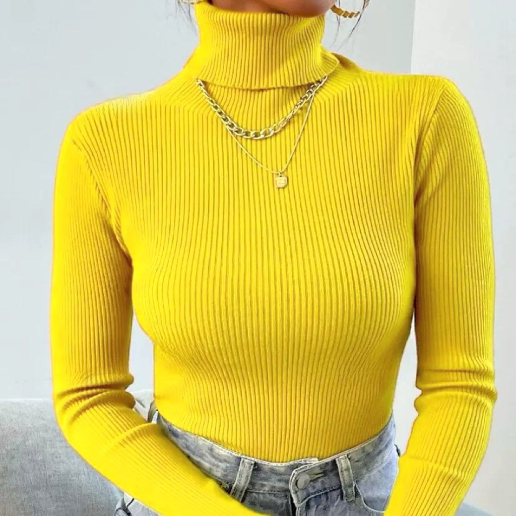 Tutustu naisten eleganttiin korkean kauluksen neuleeseen, jossa on hieno ribbikudos, joka yhdistää mukavuuden ja tyylin. Tämä monikäyttöinen yläosa on täydellinen moneen tilaisuuteen, olipa kyseessä toimisto, illalliset tai vapaa-aika.